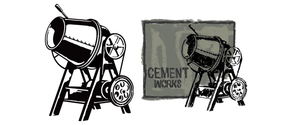 An icon (cement mixer see image below left) that I created in Adobe Illustrator (a designer friend asked me to create for a freelance project he was working on). My rough idea sketch (see image below right). I than repurposed it to create the logo above. (Illustrator/Photoshop)